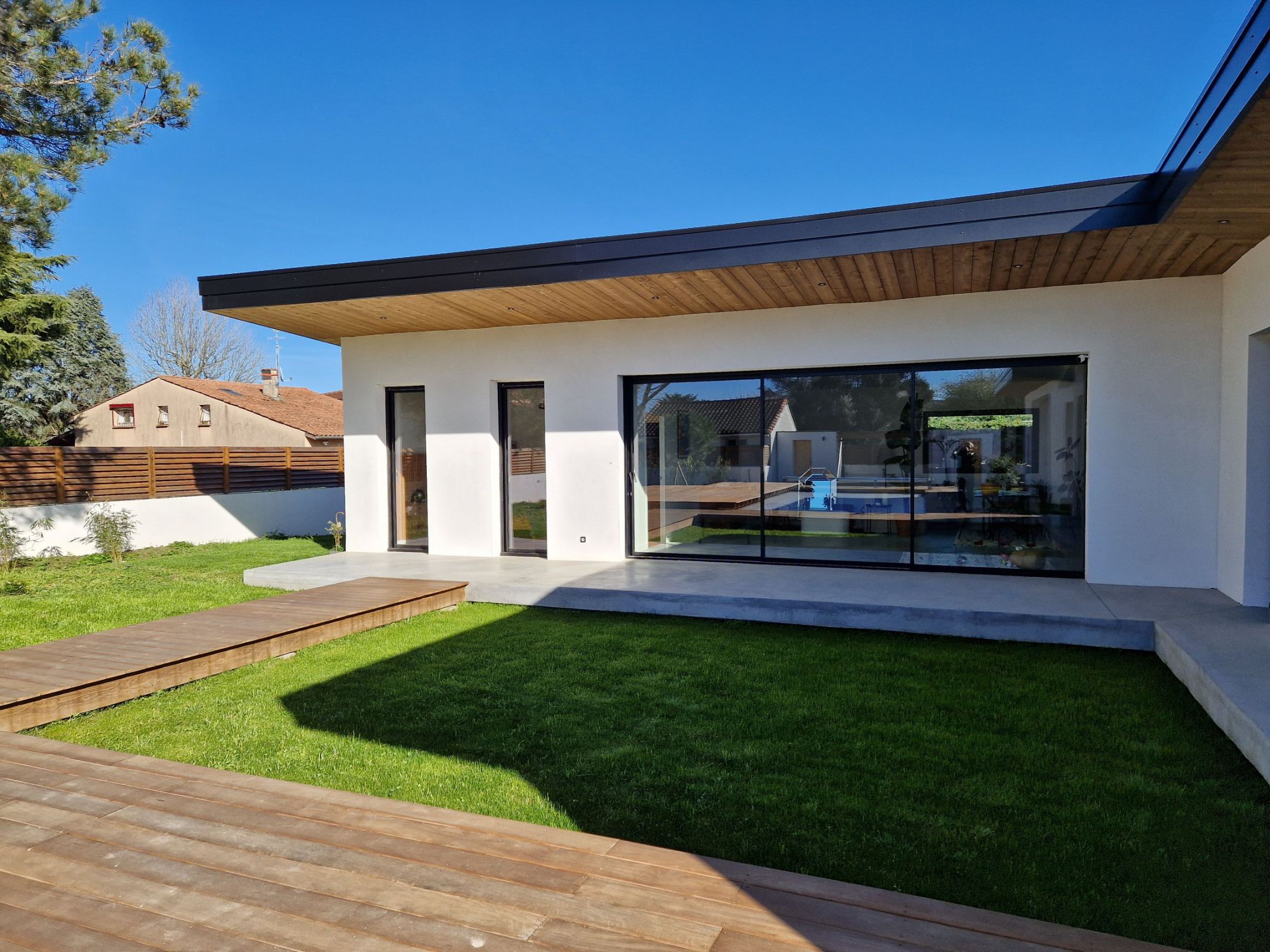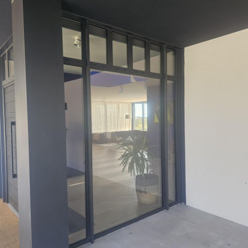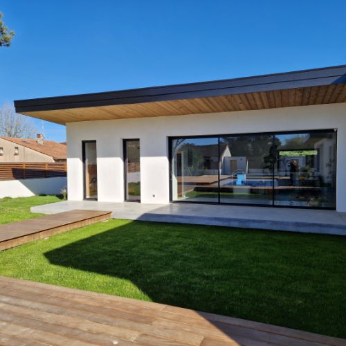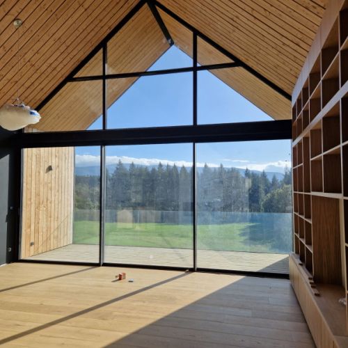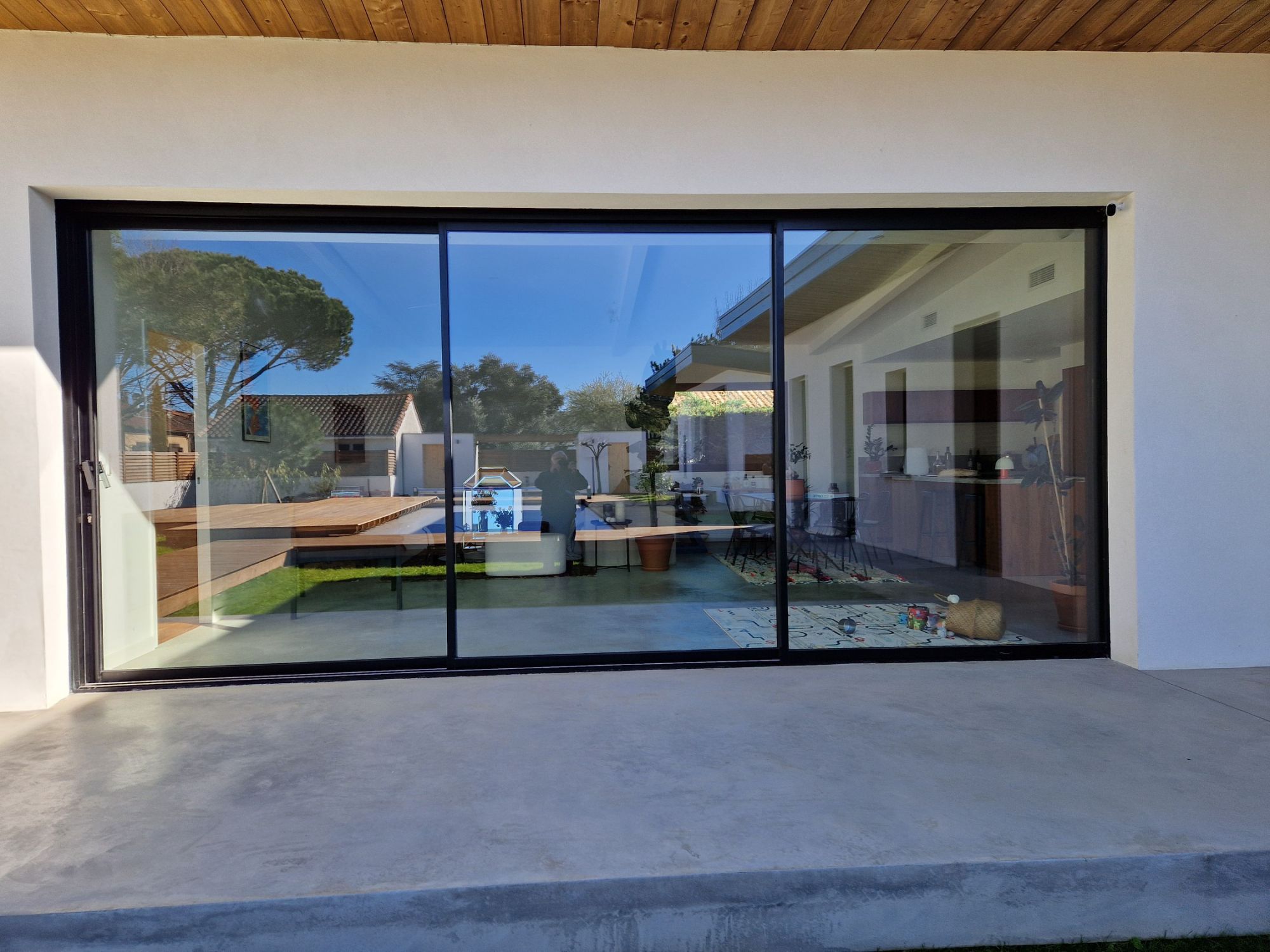 Un style épuré qui valorise l’espace. Les baies coulissantes laissent entrer la lumière, tout en assurant isolation et confort au quotidien.