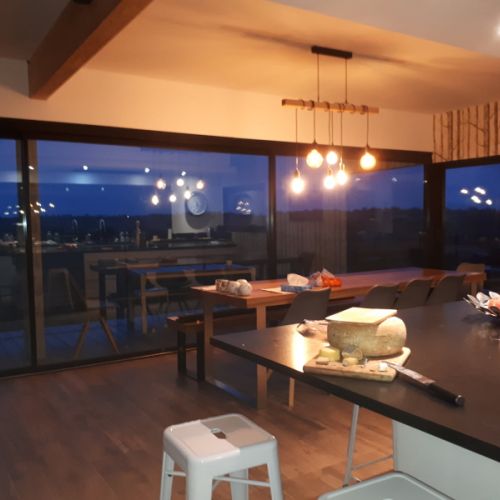 Un style épuré qui valorise l’espace. Les baies coulissantes laissent entrer la lumière, tout en assurant isolation et confort au quotidien.
